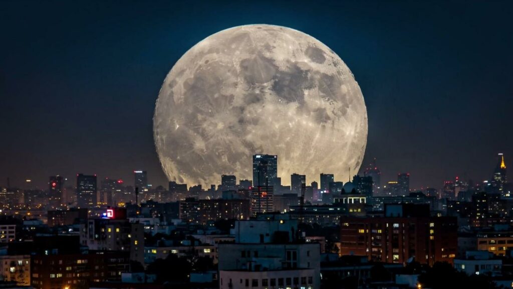 8) The “Giant” Moon Behind A City