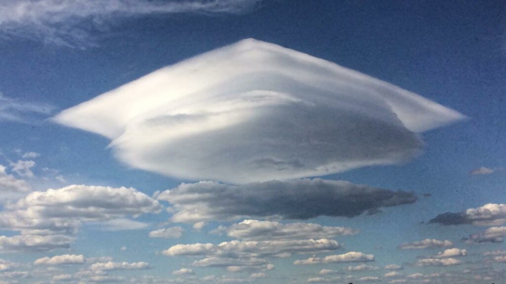 A blocky cloud can be a contrail reshaped by wind shear and layered humidity, while square-looking ice can be broken lake-ice plates jammed together along straight fracture lines. Your brain reads sharp geometry as “made,” but nature produces crisp edges all the time. This is one of the more satisfying bizarre real life images explained by weather patterns and stress fractures.