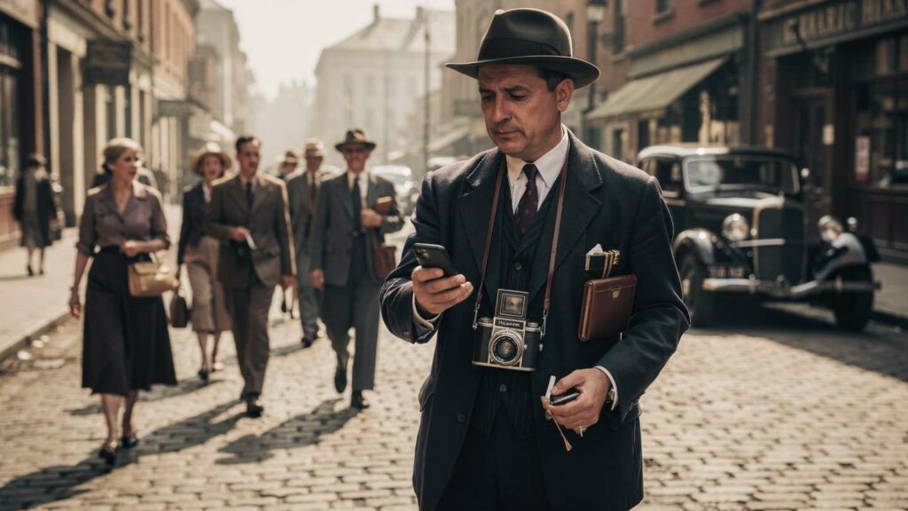 A photo circulates showing someone “using a smartphone” in a decades-old crowd. Often the person is holding a compact camera, a cigarette case, a small notebook, or a period-correct hearing aid component, and the posture does the rest. These are confusing historical photos explained by modern assumptions pasted onto older objects and poses.